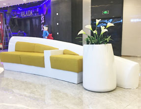 藝術花盆花器通過它的材料、造型、顏色來體現藝術設計理念,是商場美陳中的一個重要休閑景觀,凈化室內空氣點綴裝飾商業環境